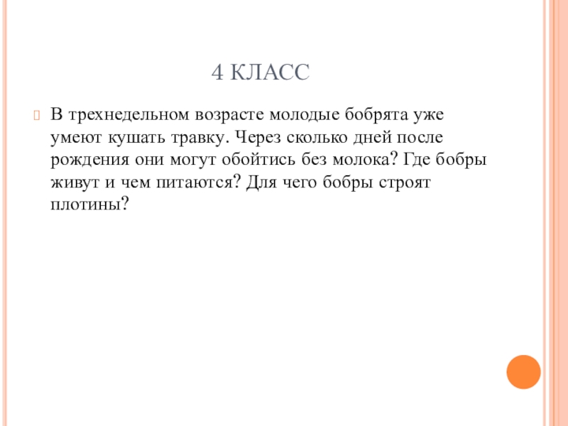 4 КЛАССВ трехнедельном возрасте молодые бобрята уже умеют кушать травку. Через сколько дней после рождения они могут