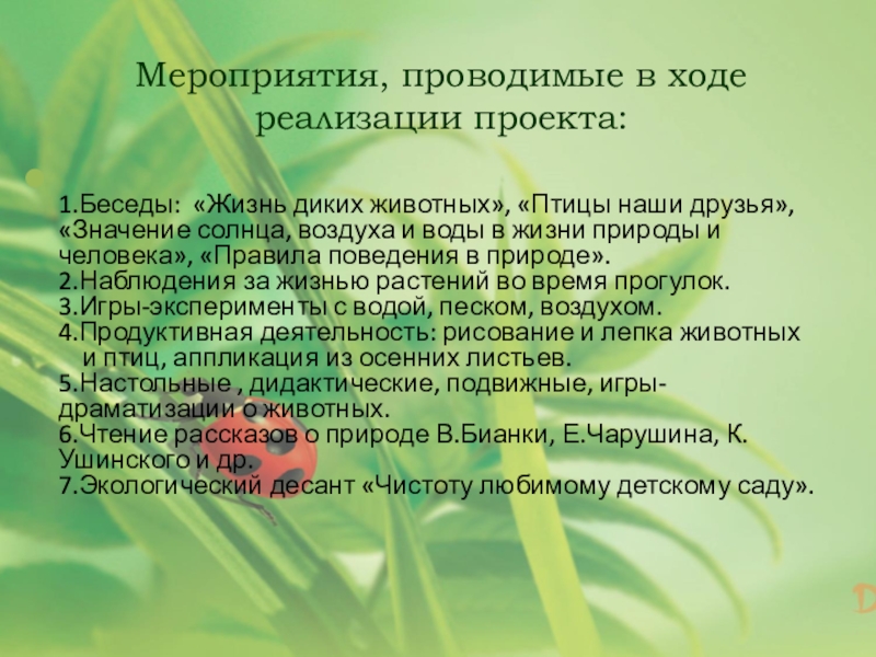 Слайд 6Мероприятия, проводимые в ходе реализации проекта: