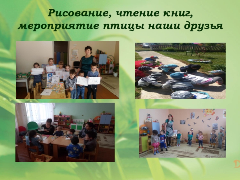 Слайд 8Рисование, чтение книг, мероприятие птицы наши друзья
