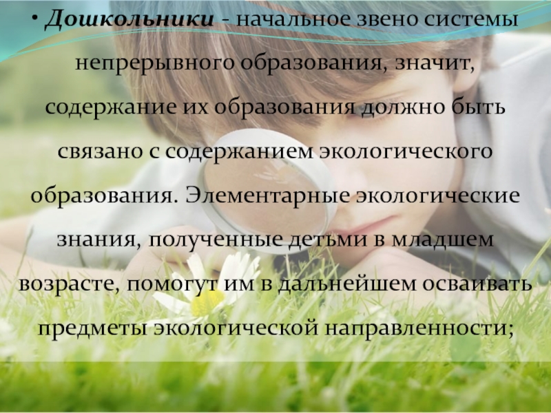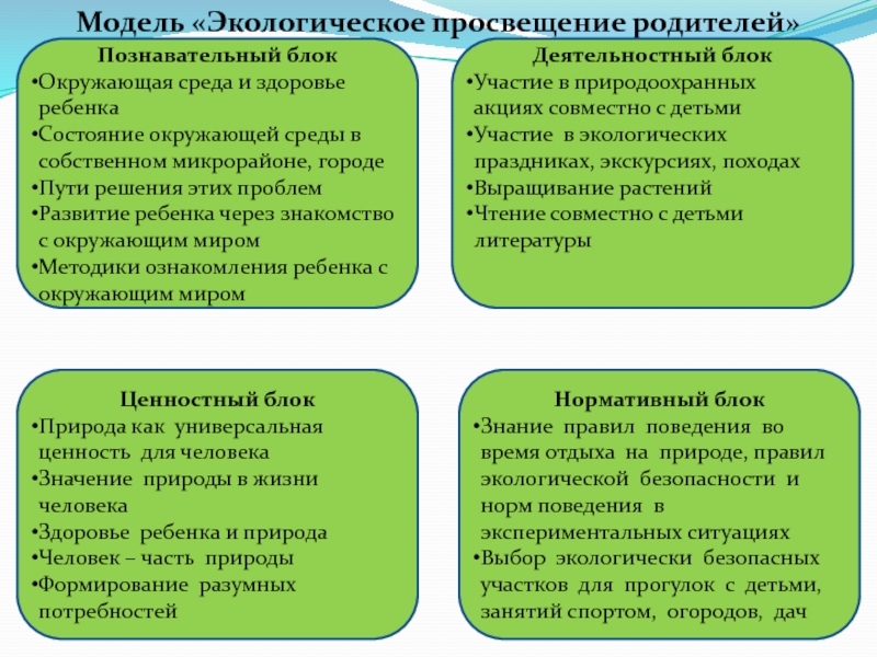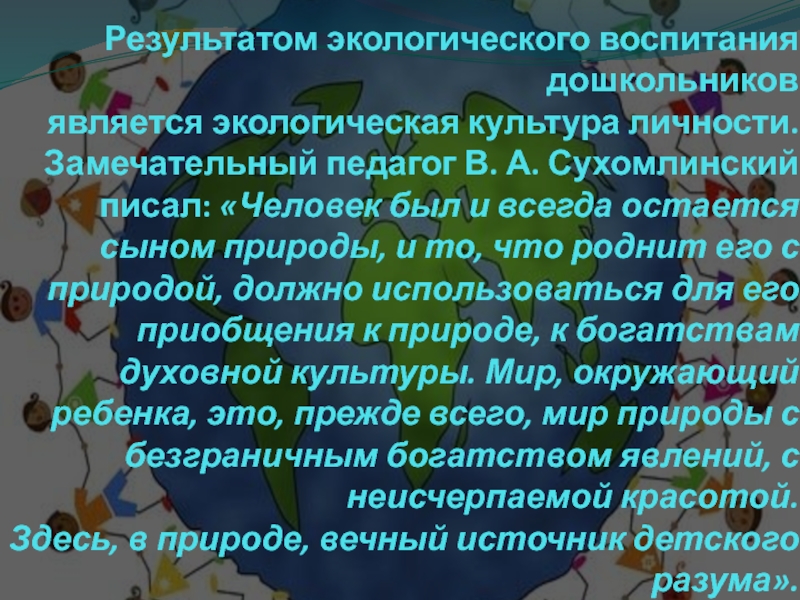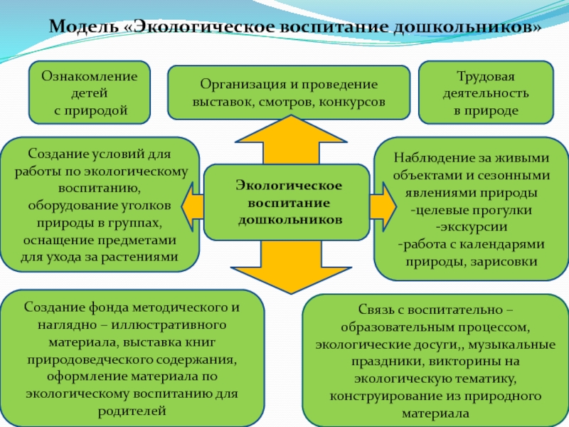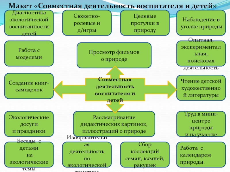 Связь с воспитательно – образовательным процессом, экологические досуги,, музыкальные праздники, викторины на экологическую тематику, конструирование из природного материала
