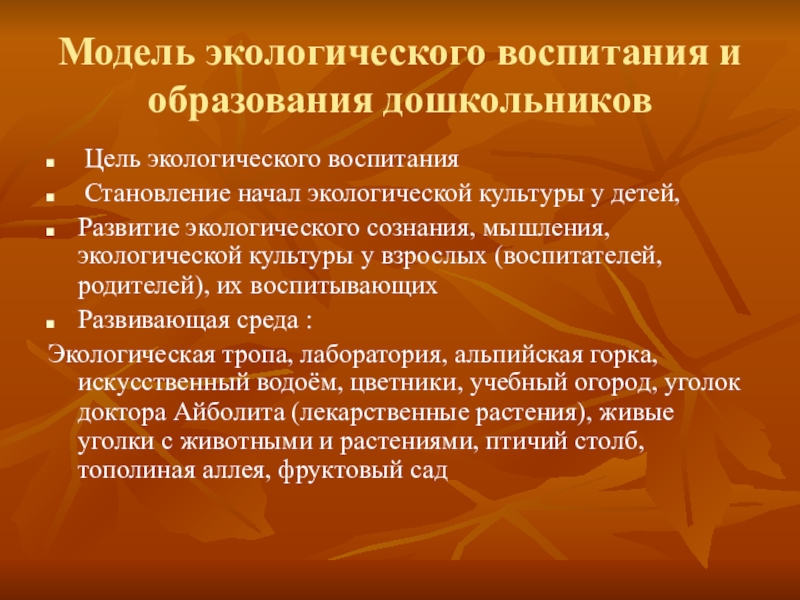 Слайд 4Модель экологического воспитания и образования дошкольников