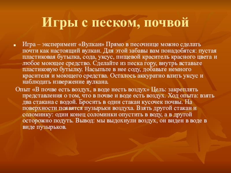 Игра – эксперимент «Вулкан» Прямо в песочнице можно