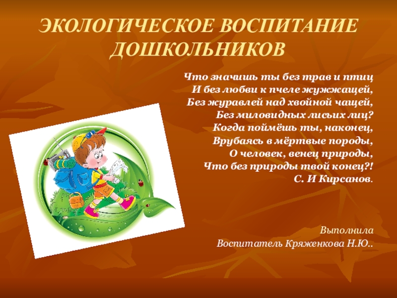 Слайд 1ЭКОЛОГИЧЕСКОЕ ВОСПИТАНИЕ ДОШКОЛЬНИКОВ