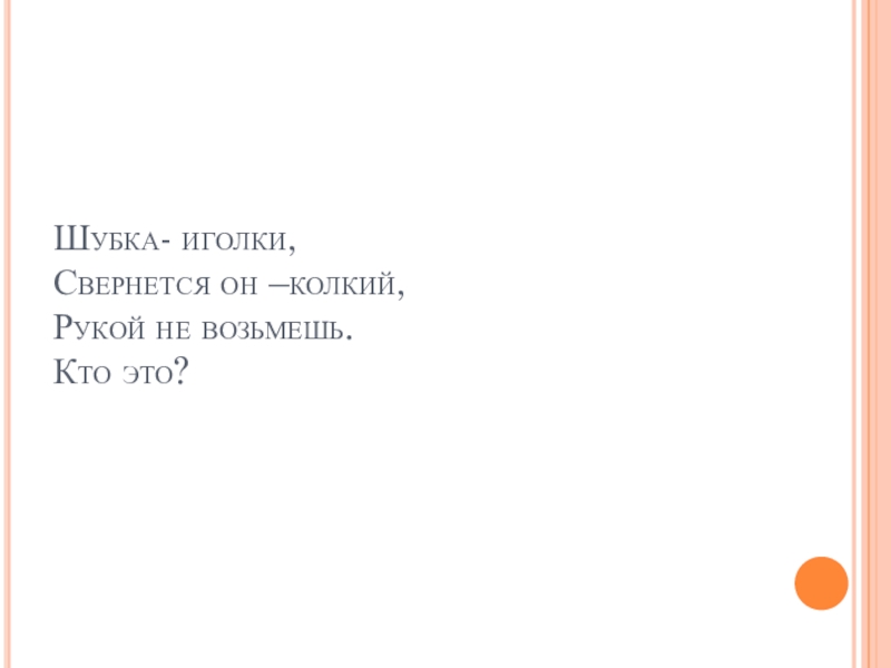 Слайд 12Шубка- иголки, Свернется он –колкий, Рукой не возьмешь. Кто это?