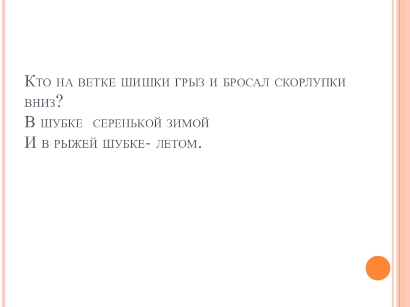 Слайд 6Кто на ветке шишки грыз и бросал скорлупки вниз? В шубке серенькой