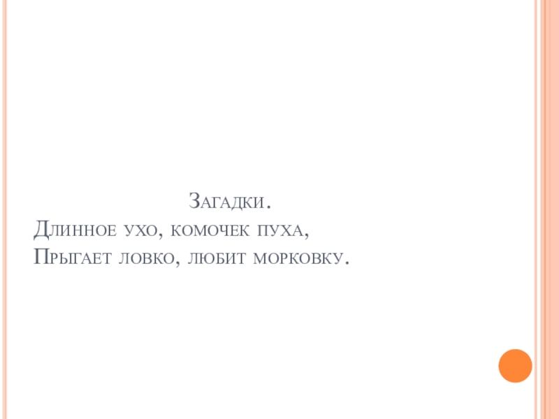 Загадки. Длинное ухо, комочек пуха, Прыгает ловко, любит морковку.