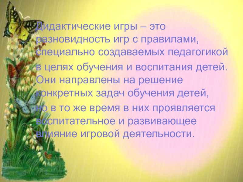 Слайд 2 Дидактические игры – это разновидность игр с правилами,