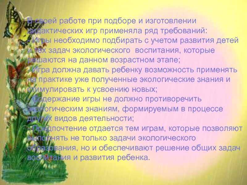 Презентация, доклад Экологическое воспитание по средствам дидактических игр