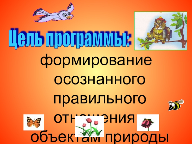 формирование осознанного правильного отношения к объектам природыЦель программы: