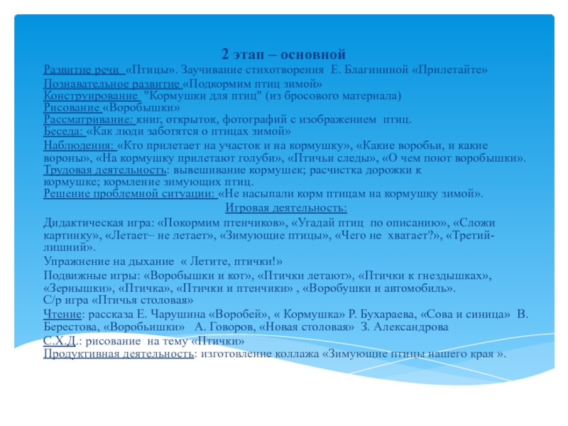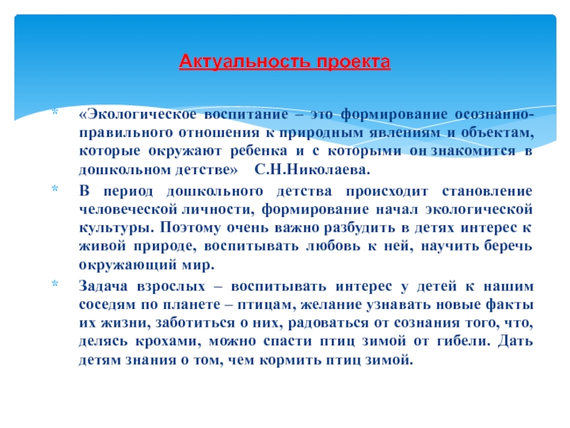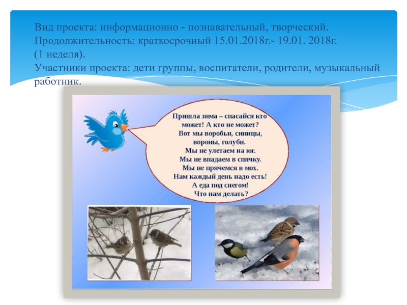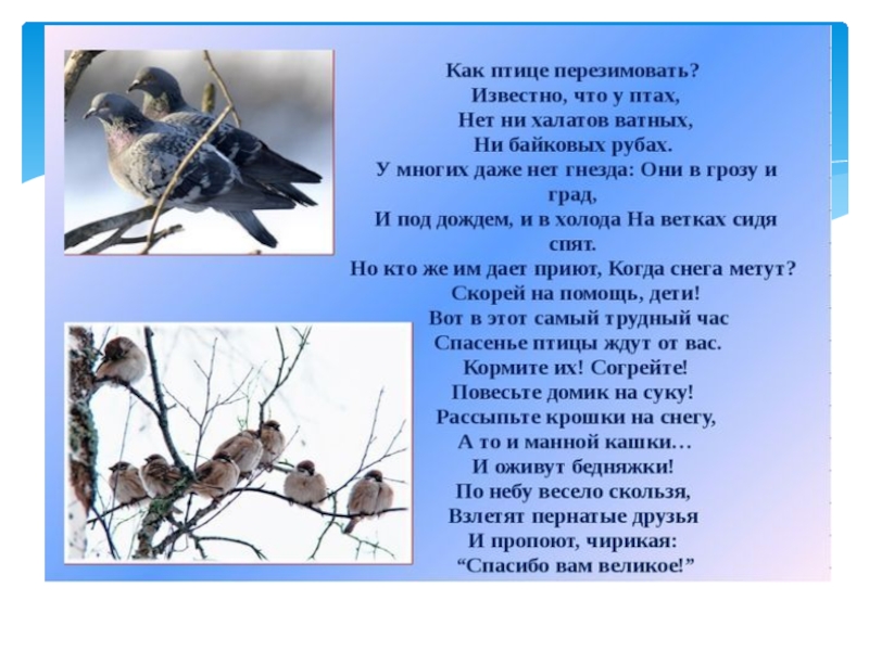 Экологический проект «Трудно птицам зимовать, надо птицам помогать»