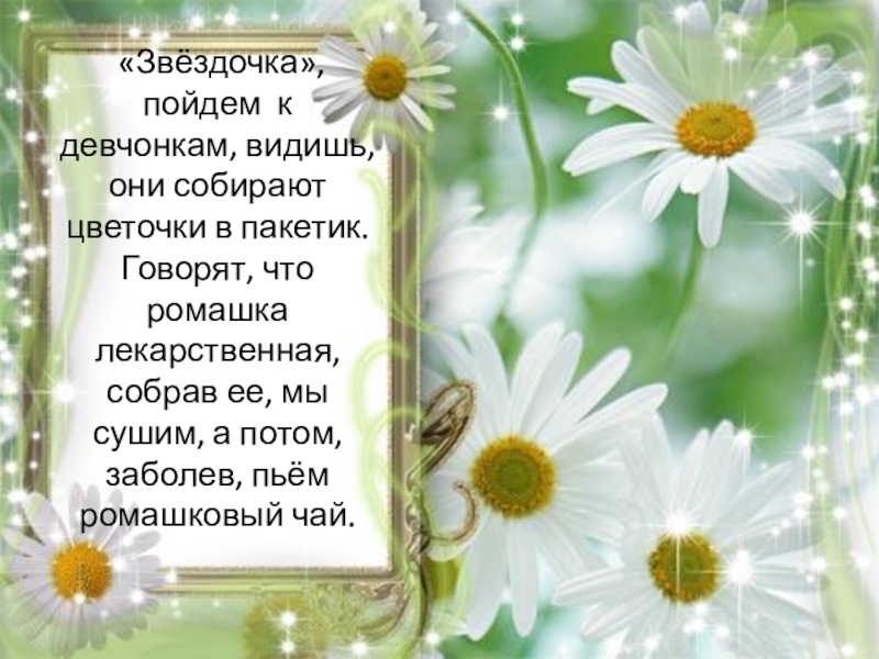 Слайд 7 «Звёздочка», пойдем к девчонкам, видишь, они собирают цветочки в пакетик.