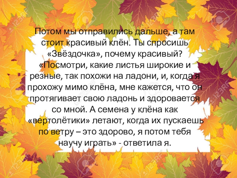 Слайд 3Потом мы отправились дальше, а там стоит красивый клён. Ты спросишь