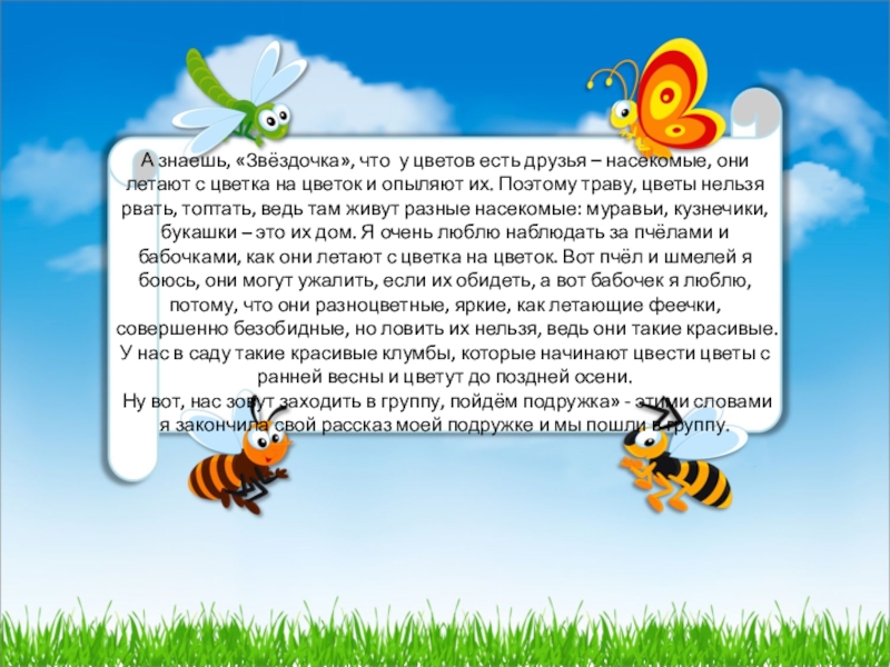 Слайд 8А знаешь, «Звёздочка», что у цветов есть друзья – насекомые, они