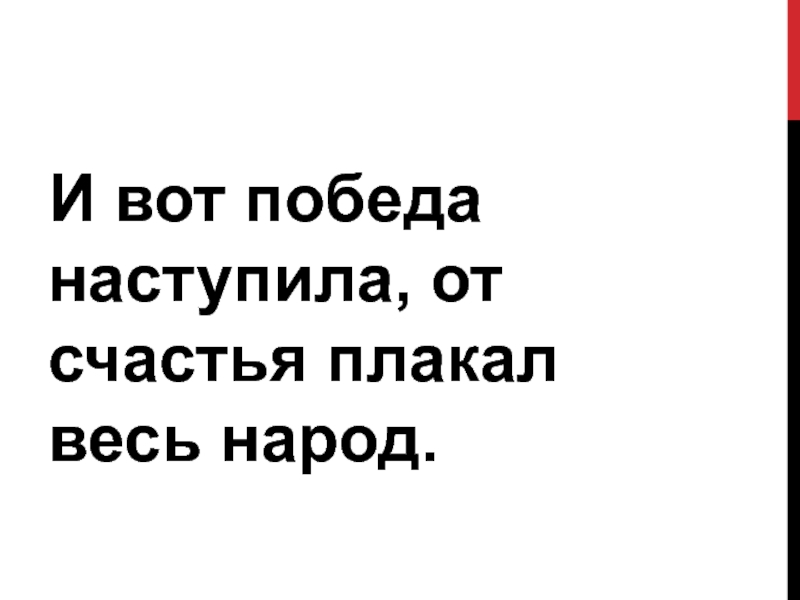 Слайд 5И вот победа наступила, от счастья плакал весь народ.