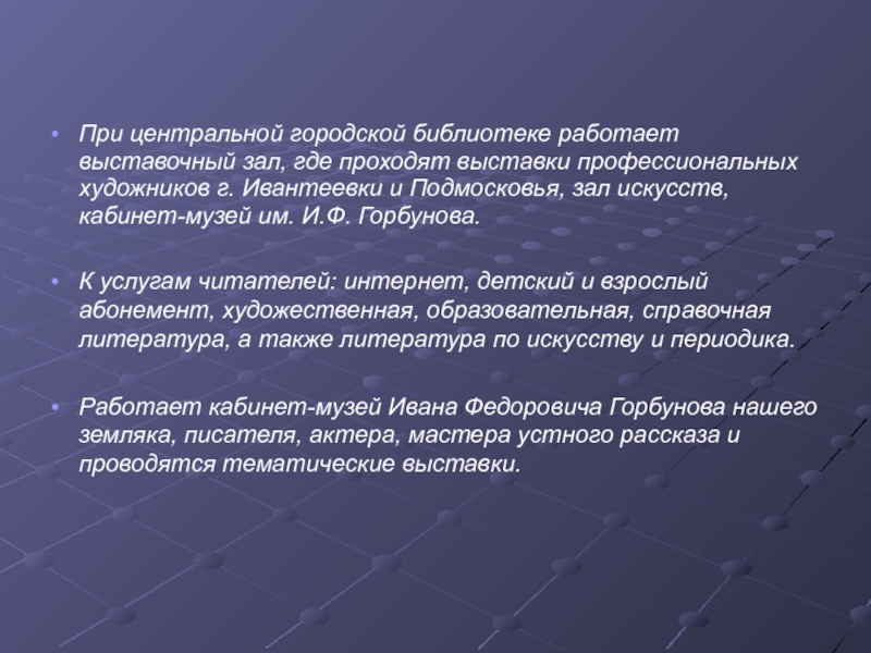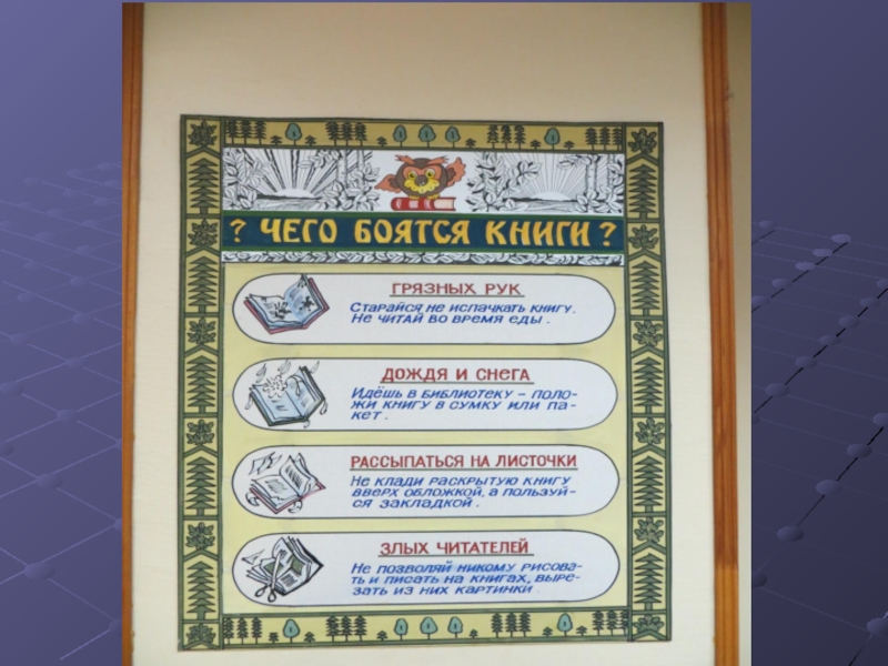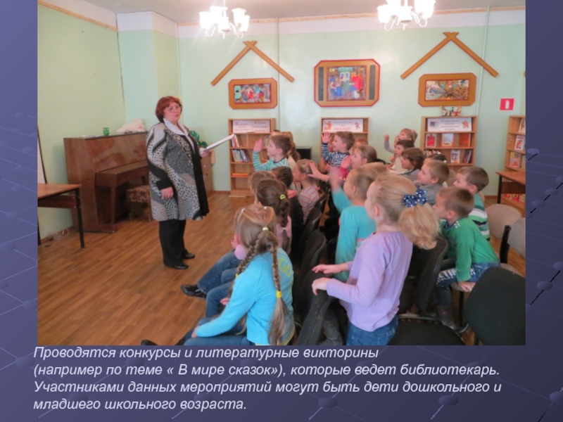В библиотеке можно не только познакомиться с интересными книгами, но и принять участие в литературной викторине, интеллектуальной игре, а также литературных праздниках и вечерах, которые проводит библиотекарь.
