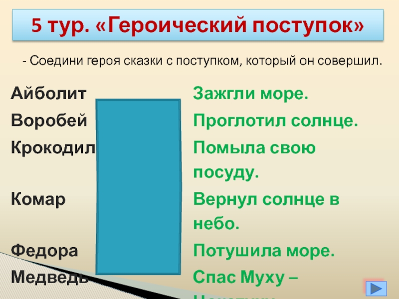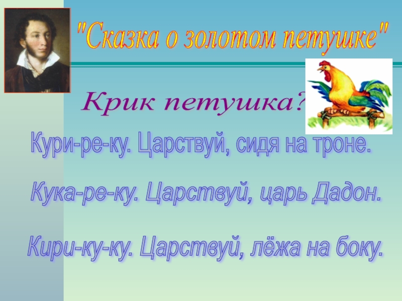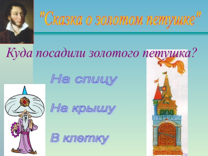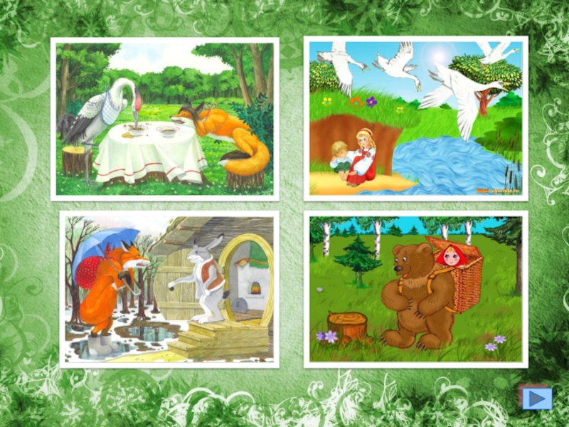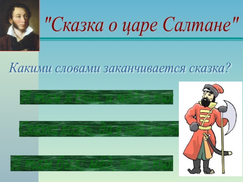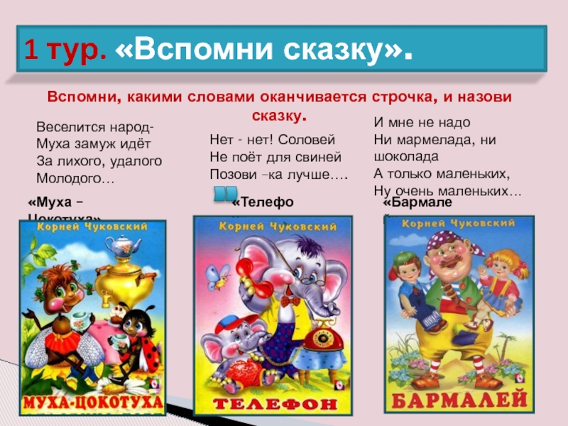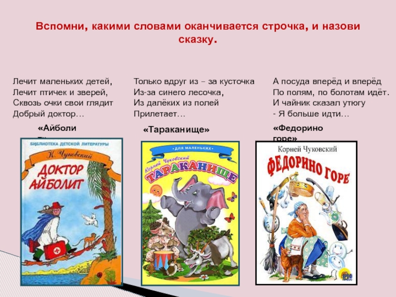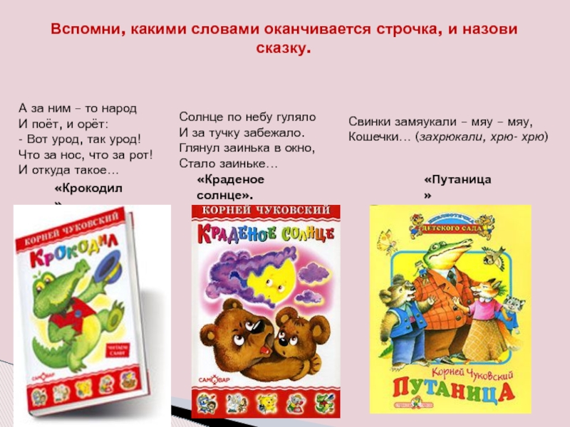 Вспомни, какими словами оканчивается строчка, и назови сказку.