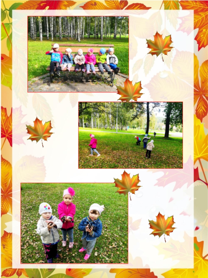 Прогулка по осеннему парку явилась хорошей возможностью собрать материалы для будущего гербария или какой-нибудь оригинальной осенней композиции, которую дети сделают в группе. Они с удовольствием набирали листья, шишки для своих будущих творений.