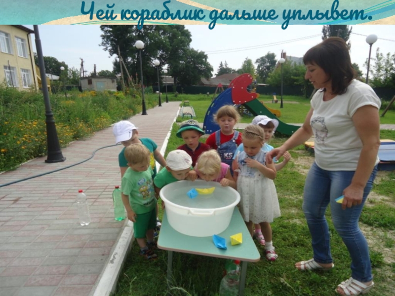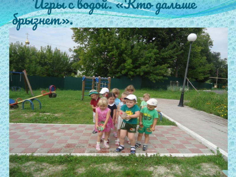 Слайд 4 Игры с водой. «Кто дальше брызнет».