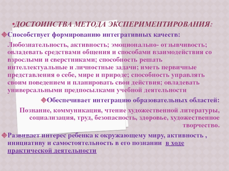 ДОСТОИНСТВА МЕТОДА ЭКСПЕРИМЕНТИРОВАНИЯ: