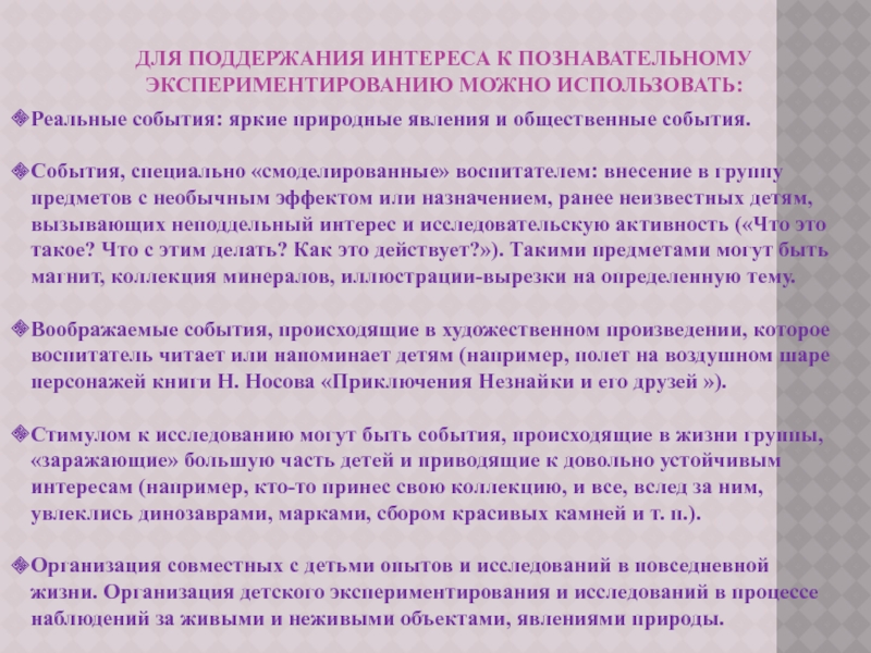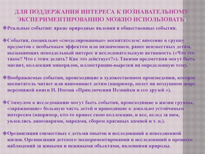 Слайд 16для поддержания интереса к познавательному экспериментированию можно использовать: