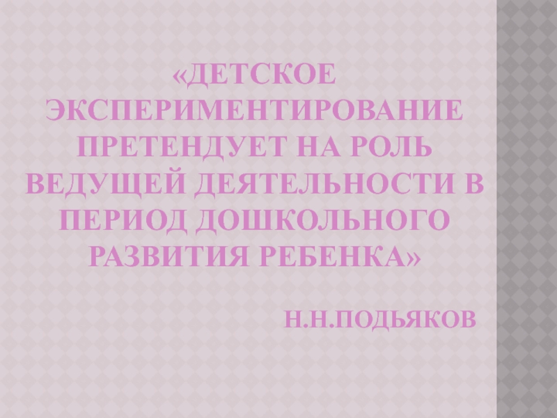 «Детское экспериментирование претендует на роль ведущей деятельности в период дошкольного развития