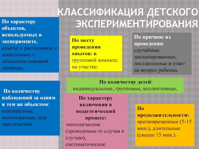 Слайд 7Классификация детского экспериментирования
