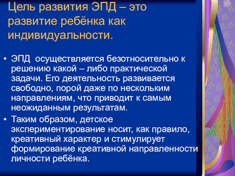 Слайд 2Цель развития ЭПД – это развитие ребёнка как индивидуальности.