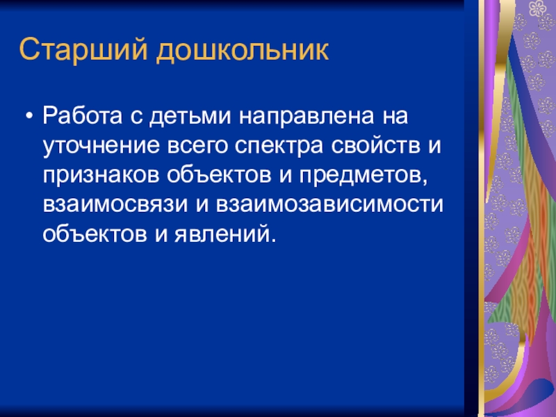 Работа с детьми направлена на уточнение всего спектра свойств и