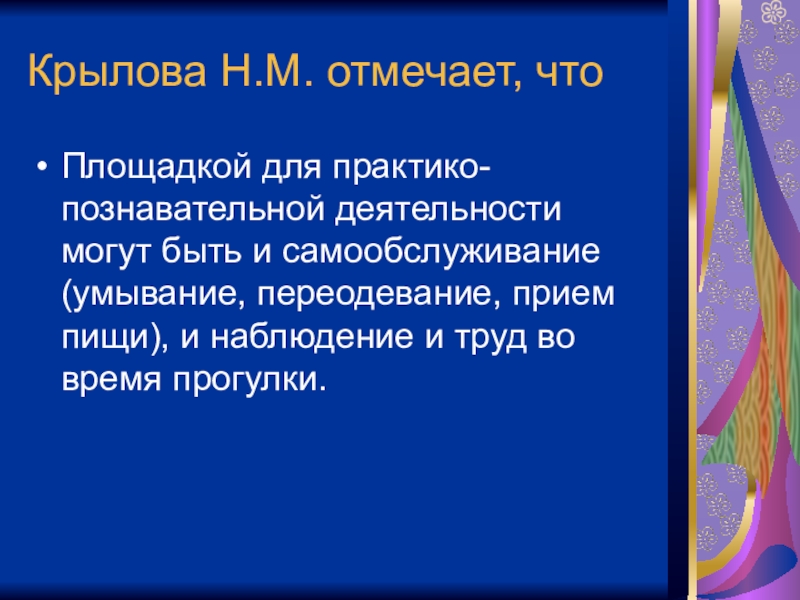 (умывание, переодевание, прием пищи), и наблюдение и труд во время прогулки.