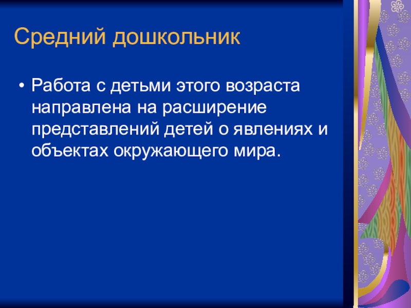 Работа с детьми этого возраста направлена на расширение представлений детей