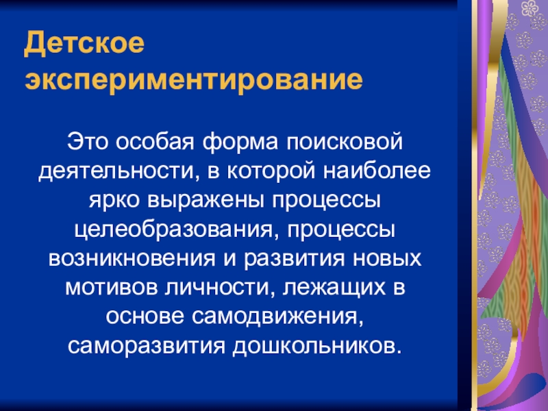 процессы целеобразования, процессы возникновения и развития новых мотивов личности, лежащих в основе самодвижения, саморазвития дошкольников.