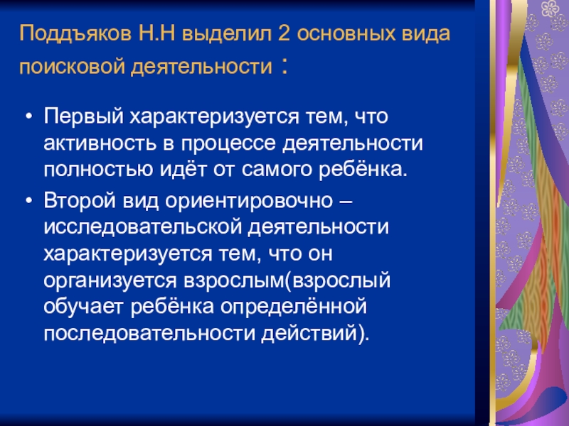 Слайд 4Поддъяков Н.Н выделил 2 основных вида поисковой деятельности :