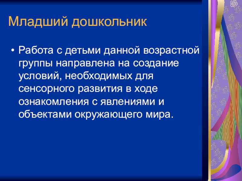 Работа с детьми данной возрастной группы направлена на создание условий,