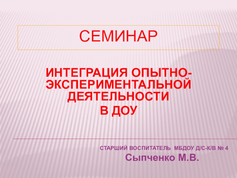 СЕМИНАРИНТЕГРАЦИЯ ОПЫТНО-ЭКСПЕРИМЕНТАЛЬНОЙ ДЕЯТЕЛЬНОСТИ В ДОУ