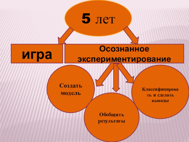 5 летиграОсознанное экспериментированиеСоздать модельОбобщить результатыКлассифицировать и сделать выводы