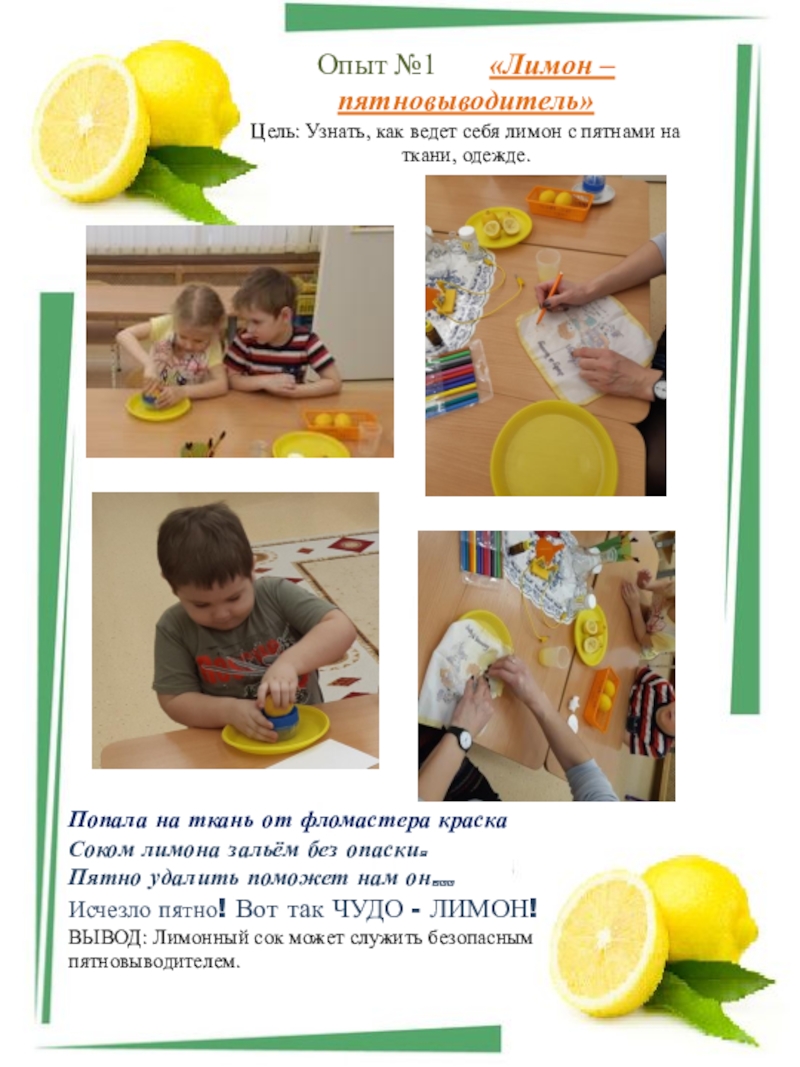 ВЫВОД: Лимонный сок может служить безопасным пятновыводителем.