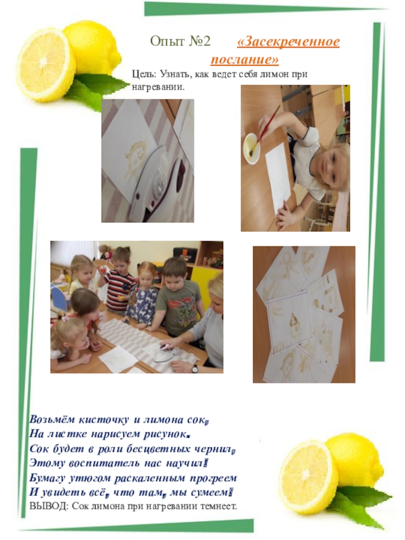 ВЫВОД: Сок лимона при нагревании темнеет.
