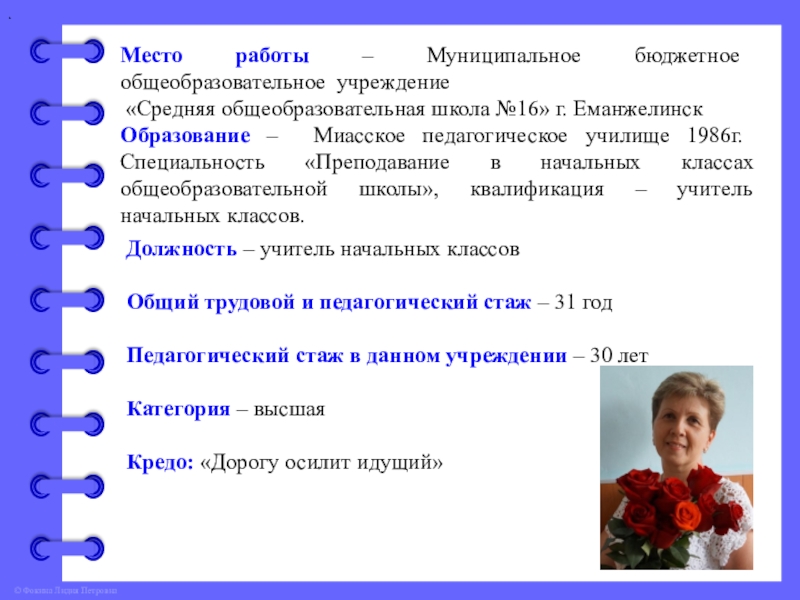 Место работы – Муниципальное бюджетное общеобразовательное учреждение