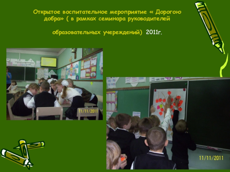 Открытое воспитательное мероприятие « Дорогою добра» ( в рамках семинара руководителей образовательных учереждений) 2011г.