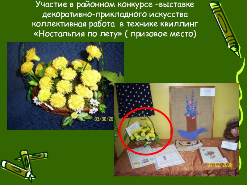 Участие в районном конкурсе –выставке декоративно-прикладного искусства  коллективная работа в технике квиллинг «Ностальгия по лету» (
