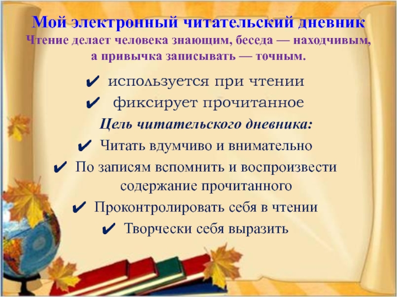 Цель читательского дневника: