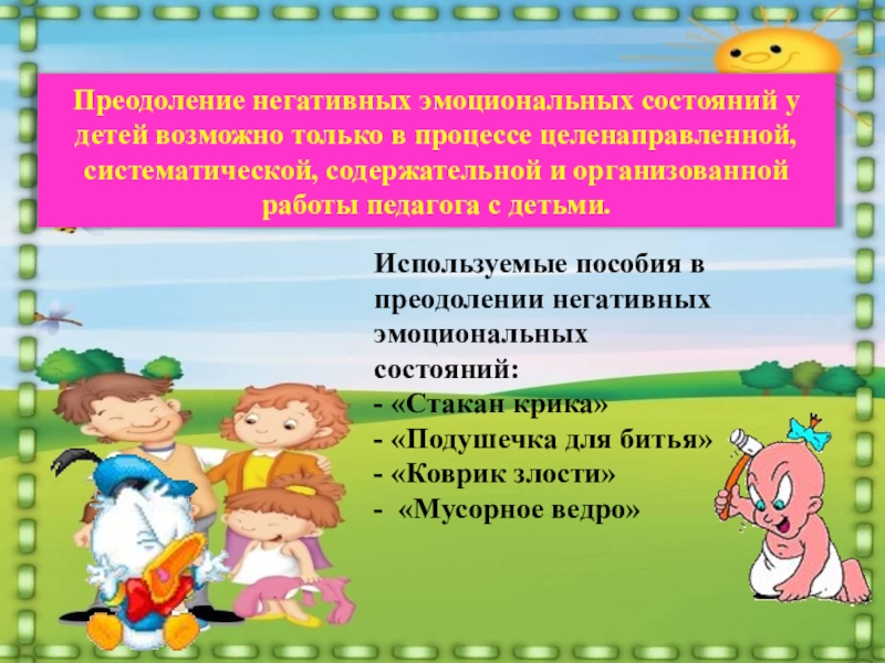 Используемые пособия в преодолении негативных эмоциональных состояний: