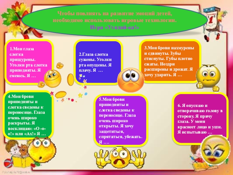 Чтобы повлиять на развитие эмоций детей, необходимо использовать игровые технологии.
