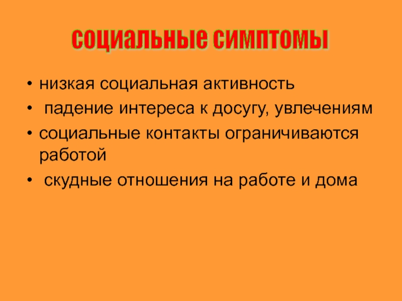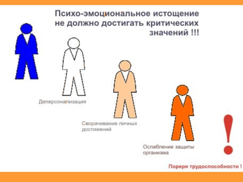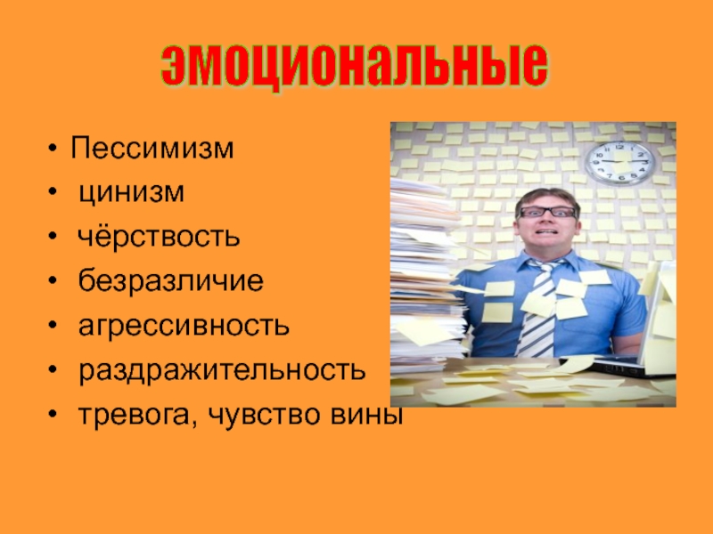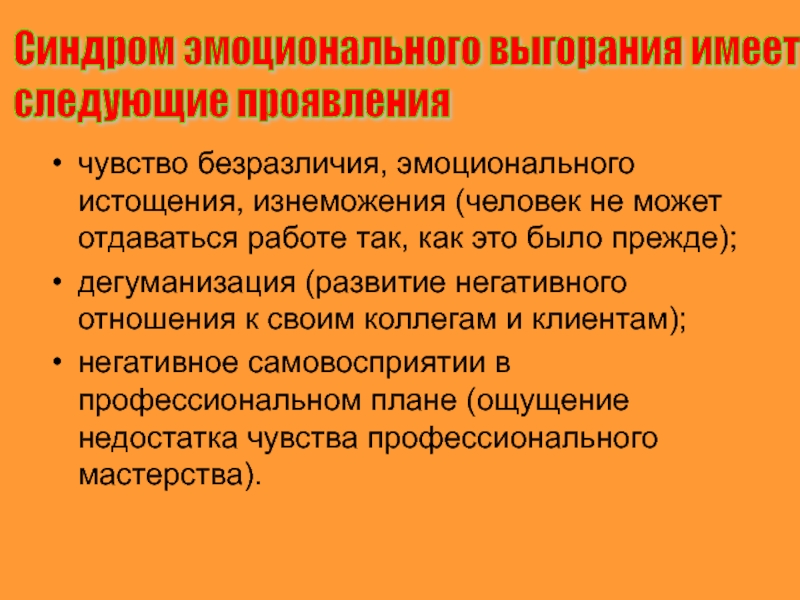 Слайд 12чувство безразличия, эмоционального истощения, изнеможения (человек не может отдаваться работе так,