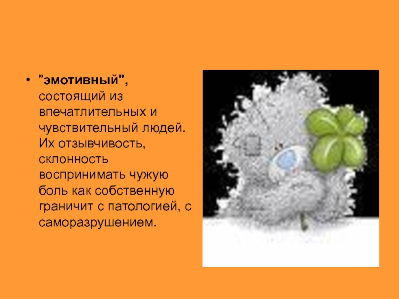 Слайд 11"эмотивный", состоящий из впечатлительных и чувствительный людей. Их отзывчивость, склонность воспринимать