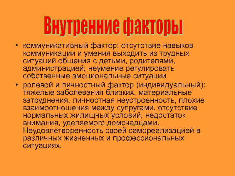 Слайд 8коммуникативный фактор: отсутствие навыков коммуникации и умения выходить из трудных ситуаций