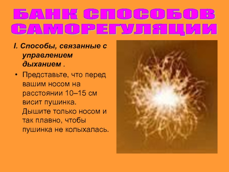 Слайд 27I. Способы, связанные с управлением дыханием .