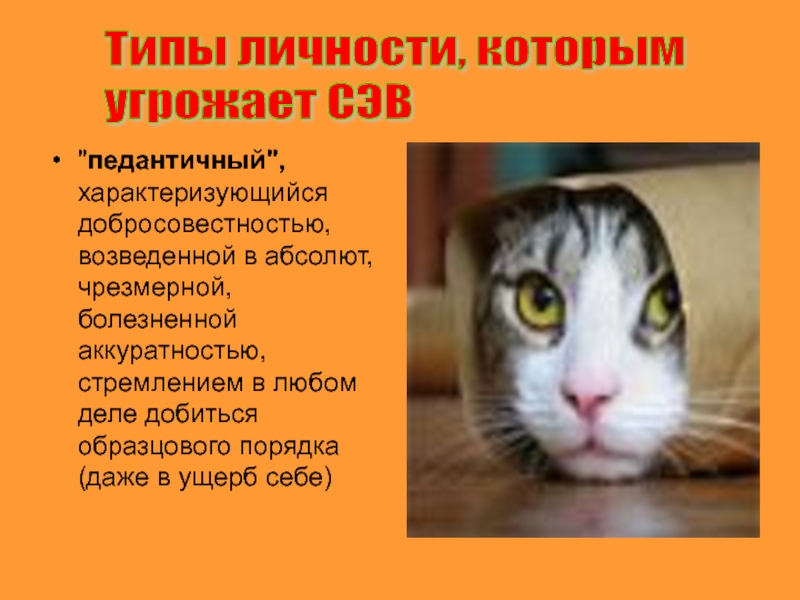 Слайд 9"педантичный", характеризующийся добросовестностью, возведенной в абсолют, чрезмерной, болезненной аккуратностью, стремлением в