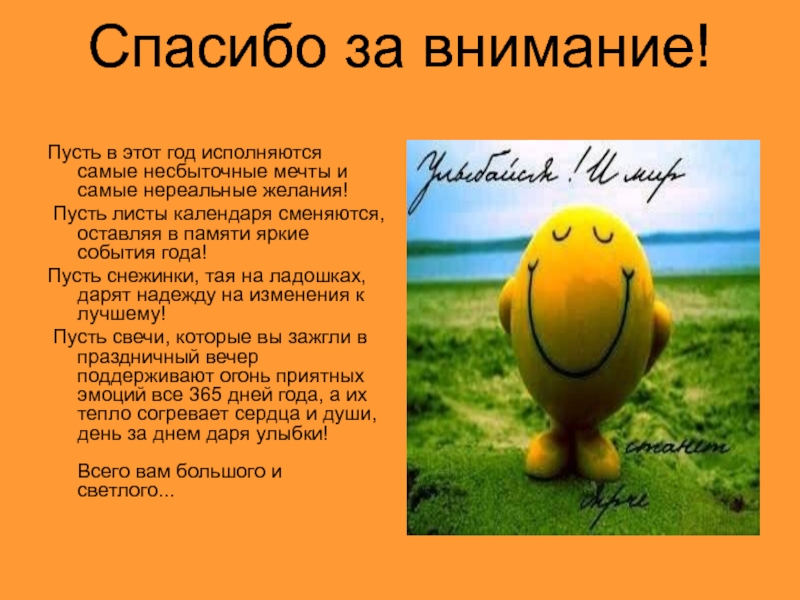 Пусть свечи, которые вы зажгли в праздничный вечер поддерживают огонь приятных эмоций все 365 дней года, а их тепло согревает сердца и души, день за днем даря улыбки!