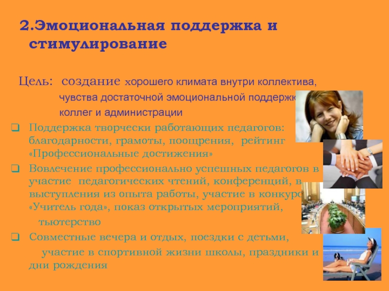 Слайд 21 2.Эмоциональная поддержка и стимулирование